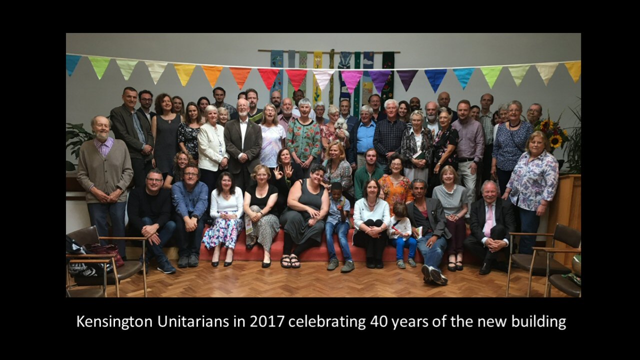 And here’s the present-day building which many of us know, and love, and currently miss. It was opened in 1977 and is a beautiful, flexible, quirky space, with an annoyingly leaky roof. Now to squeeze this story of our history into 6 ½ minutes of course I’m going to leave a lot out. From being here 21 years myself, I’m already conscious of all the history of the church that has unfolded before my eyes, all the devoted and influential figures who’ve passed through this congregation over the years and given so much of themselves to keep the show on the road. And that made me start to think a bit about all that doesn’t get written down for posterity.